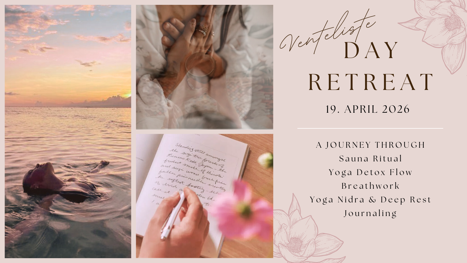 Spring Day Retreat er en sanselig, helende og inspirerende opplevelse – en indre vårvask – der vi gjennom badstue, havsbad, myk yoga, pust, meditasjon, journaling og en hjerteåpnende kakao-seremoni inviterer klarhet, letthet og ny energi.
