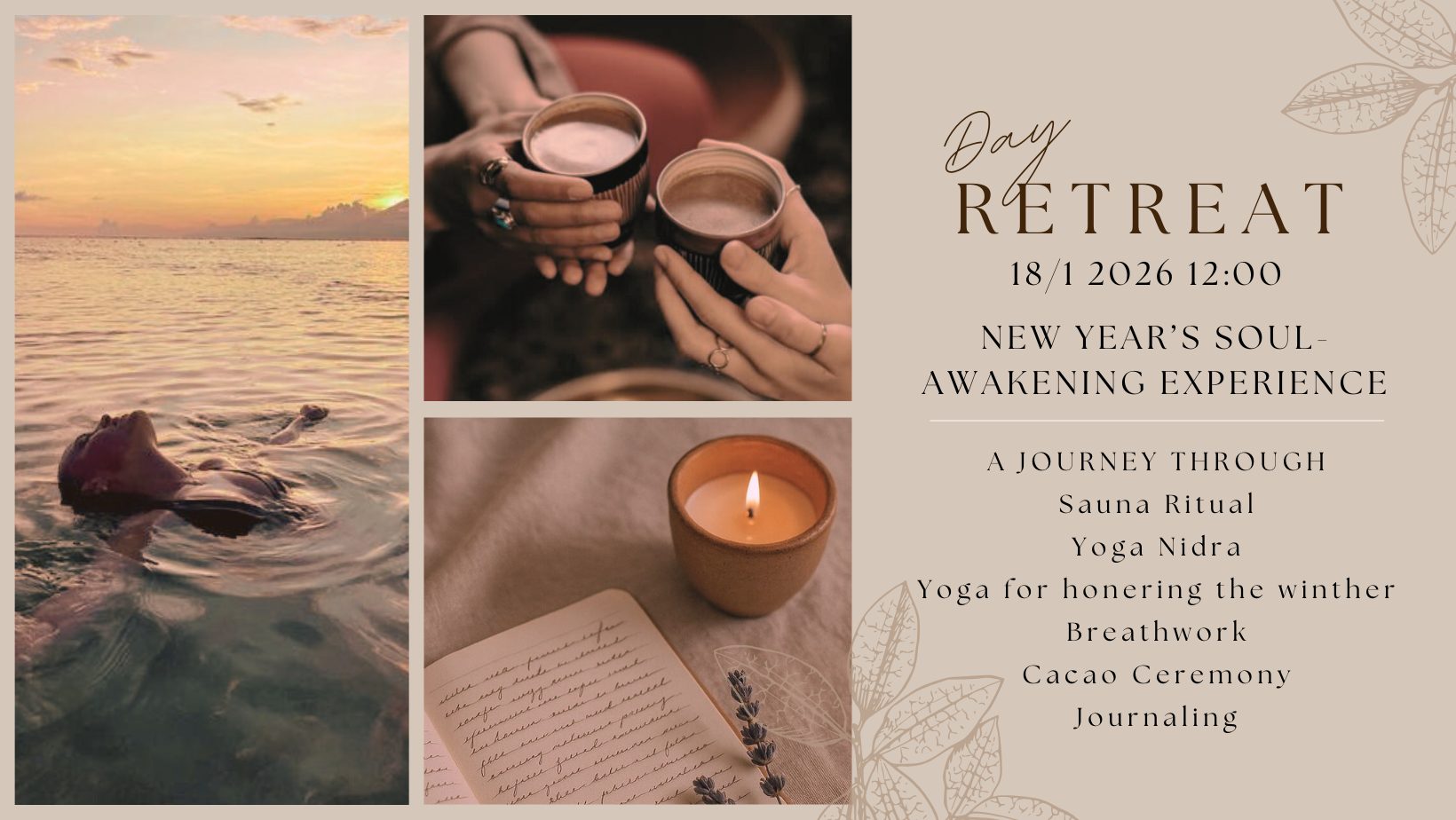 New Yearâs Soul Awakening er en sanselig, helende og inspirerende dag med badstue, havsbad, yoga, pust, meditasjon og cacao.