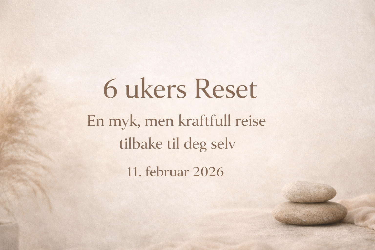 6 ukers Reset er et program/kurs der vi jobber mykt, men dypt med pust, meditasjon, hypnose, regulering av nervesystemet, refleksjons oppgaver og bevisstgjøring.